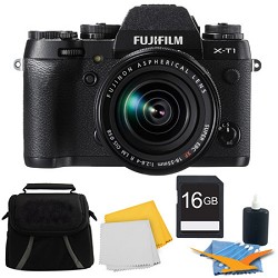 Bundle Includes: X-T1 16.3MP Full HD 1080p Video Mirrorless Digital Camera with 18-55mm Lens Compact Deluxe Gadget Bag for Cameras/Camcorders 16GB Secure Digital SD Memory Card 1 Piece Micro Fiber Cloth 3pc. Lens Cleaning Kit Awaken your senses as never before with the world's largest* and fastest** Multi Mode Viewfinder. With its high-resolution 2.36million dot OLED display, and the world's highest magnification ratio of 0.77x*, the FUJIFILM X-T1's Real Time Viewfinder allows a true connection to your subject and a purely immersive shooting experience. The viewfinder achieves a wide angle of view of 31 degrees, and with the display's lag time of just 0.005 sec - less that a tenth of conventional cameras - you'll immediately see any changes to your composition, keeping you in touch with whatever you're shooting. The viewfinder's Graphic User Interface provides a fresh shooting experience with clear details and a comfortable at-a-glance view of your settings. FULL" mode takes full advantage of the high magnification ratio of the FUJIFILM X-T1's viewfinder to give an unrivalled view of the scene. "NORMAL" provides an optimum view, including shooting settings and "DUAL" is specially designed for manual focusing with a clever split view. In the "NORMAL" and "FULL" modes, the view automatically rotates for a vertical orientation when the camera is held vertically. Maximizing the power of APS-C-sized X-Trans CMOS II sensor The FUJIFILM X-T1's large APS-C-sized 16M X-Trans CMOS II sensor features an original color filter array that minimizes moire and color aberrations, and also includes embedded phase detection pixels. The result is image quality that rivals a full-frame sensor. 80 years of photo film research adds up to color reproduction that's second to none. Over decades of film manufacture Fujifilm has perfected the skill of color reproduction and it lives on in the FUJIFILM X-T1. Pleasing skin tones, natural blues and greens, and the ability to perfectly record the diversity of white balance conditions throughout the day are all taken in the camera's stride, and it also boasts a wide dynamic range for better reproduction of detail. Weather Resistant - dust-resistant, water-resistant and -10AC low-temperature operation. The weather resistant structure is sealed in approximately 80 places and is both dust and water resistant. Additionally it is designed to cope in temperatures as low as -10-Degrees C allowing field photography without the typical worries about the weather, season or general shooting environment. No matter whether the power is on or off, analog dial operation connects your vision and the camera. The FUJIFILM X-T1 brings you back to the very essence of photography - the control of light - and it comes via the manual shutter speed, exposure compensation, ISO sensitivity and metering dials. Including the drive dial, all five dials are intuitively arranged on the camera's top-plate and the use of double-deck dials both