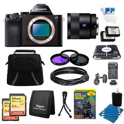 Bundle includes: A7R (Alpha 7R) Interchangeable Lens Camera - Body Only Sonnar T* FE 55mm F1.8 ZA Camera Lens 2 64 GB 94MB/s SDHC Class 10 Memory Cards 2 InfoLithium H Series NP-FW50 Camera Batteries Compact Deluxe Gadget Bag for Cameras/Camcorders 49mm UV, Polarizer, and FLD Deluxe Filter Kit 3 Card Tri-fold Memory Card Wallet 57-in-1 USB 2.0 High Speed Memory Card Reader AC/DC Rapid Battery Charger for Sony FW50 Batteries 6 Ft. HDMI to Micro-HDMI Gold Audio/Video Cable JumpStart Digital SLR Photography Training Guide DVD Flexible Mini Table-top Tripod 3 Pc. Digital Camera and Camcorder LCD Screen Protectors 3pc. Lens Cleaning Kit A New Frame of Mind No other full frame, interchangeable-lens camera is this light or this portable. 36.4MP of rich detail. A true-to-life 2.4 million dot OLED viewfinder. Wi-Fi sharing and an expandable shoe system. It's all the full-frame performance you ever wanted in a compact size that will change your perspective entirely. World's Smallest and Lightest Meet the world's smallest and lightest interchangeable lens full-frame camera*. Sony's Exmor image sensor takes full advantage of the Full-frame format, but in a camera body less than half the size and weight of a full-frame DSLR. *Among interchangeable-lens cameras with a full frame sensor as of October 2013. Ultimate Full Frame Resolution Capture unbelievably high resolution in combination with high sensitivity and extremely low noise thanks to a newly developed 36.4MP 35mm full-frame Exmor CMOS sensor. Removing the optical low-pass filter brings out the full potential of the sensor and lens, enhancing the sense of clarity with supremely realistic details to the very edges of your photos. An AR coating also reduces flare and ghosting. Gapless On-chip Lens Design Every gapless on-chip lens (OCL) is designed and positioned to cover every pixel and eliminate the spaces between the micro-lenses to collect significantly more light. Moreover, each on-chip lens is optimally positioned depending on its location to accommodate the sharper angle of light entering the periphery, which is caused by larger sensor dimensions being teamed with the E-mount's short flange-back distance. New BIONZ X Image Processing Engine Sony proudly introduces the new BIONZ X image processing engine, which faithfully reproduces textures and details in real time, as seen by the naked eye, via extra high-speed processing capabilities. Together with front-end LSI (large scale integration) that accelerates processing in the earliest stages, it enables more natural details, more realistic images, richer tonal gradations and lower noise whether you shoot still images or movies. Lightning Quick Autofocus Get ultra high-speed AF des