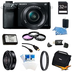 Sony Alpha NEX-6 Digital Camera 16-50mm Lens (Black) , 32GB SEL 20mm f 2.8 Lens Bundle