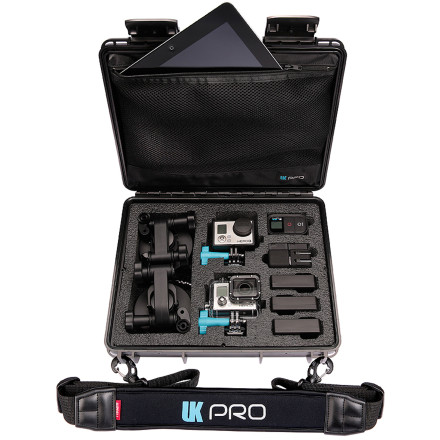 Keep your camera gear organized with this UKPro POV40 08711 waterproof case that fits up to 4 GoPro HERO cameras, floaties, suction mounts, bar mounts or other items. A neoprene shoulder strap ensures comfortable portability.